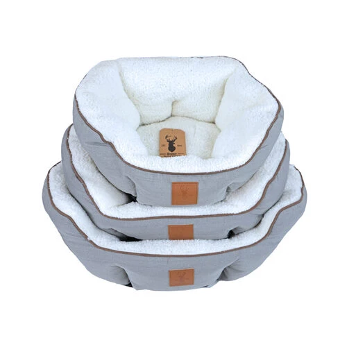 Boony Est.1941 Korb – Highland Grey ist ein superweicher Korb mit Schafsfell. Ihr Hund oder Ihre Katze wird zweifellos darin einschlafen.