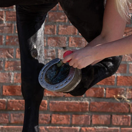 Säubern Sie Hufstrahl und -sohle. Schütteln Sie das Gel gut vor der Verwendung. Das Gel kann mithilfe eines Pinsels täglich auf die Hufsohle angebracht werden. Für die Strahlen und Furchen können Sie am besten die Spitze der Flasche gebrauchen. Sollte es nötig sein, kann die Spitze auch eingekürzt werden.