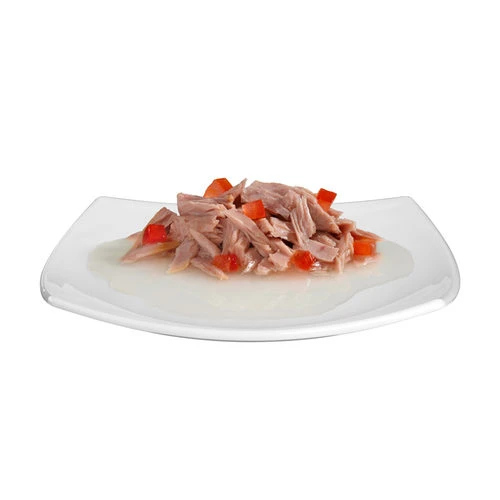 - Thunfischfilet & Tomate: Thunfischfilet (45,5%), Tomaten (4,1%) und Reis.