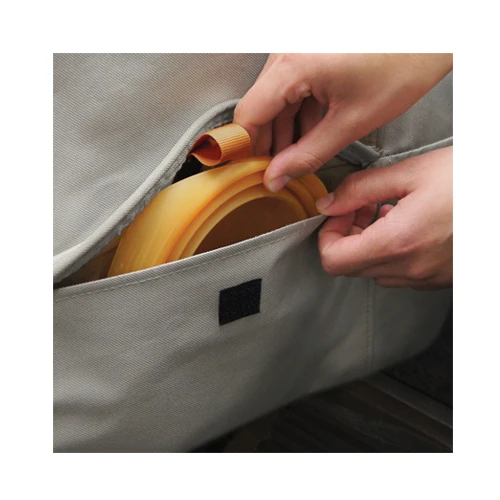 - ein Gurt an der Unterseite verhindert, dass der Schonbezug verrutscht