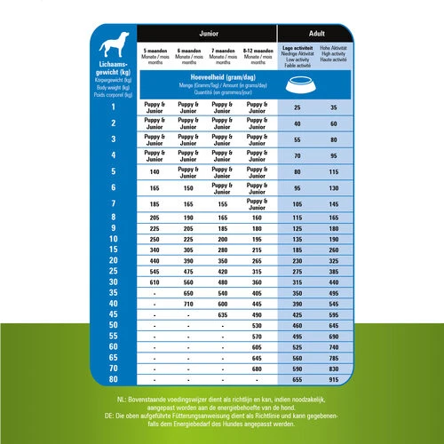 - Getreidefreies Futter mit erhöhtem Fettgehalt für aktive, trächtige oder säugende Hunde