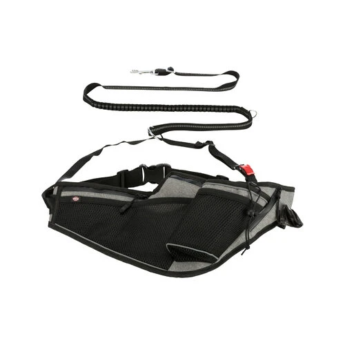 Weil es so viel mehr Spaß macht, mit seinem Vierbeiner zu joggen, spazieren zu gehen oder Rad zu fahren, gibt es den Jogging Belt von Trixie. Dieser Gurt hat ein einfach zu befestigendes System, das die Zugkraft des Hundes gleichmäßig auf die Taille des Läufers verteilt. Ein Stoßdämpfer dämpft auch das plötzliche Ziehen des Hundes. Der Jogginggürtel hat einen angenehmen Tragekomfort durch sein ergonomisches Design und einen weichen Netzeinsatz. Der Gürtel hat mehrere Taschen und einen Becherhalter, wasserdichte Reißverschlüsse und einen integrierten Kotbeutelspender.