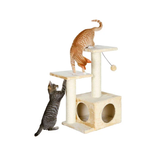 Auf der Suche nach einem kleinen Kratzbaum für zu Haus? Dann ist der Valencia Kratzbaum von Trixie eine gute Wahl! Dieser Kratzbaum hat mehrere Liegeplätze und ist für mehr als eine Katze geeignet. Die Möbel sind mit Plüschpolstern ausgestattet und die Stämme sind mit natürlichem Sisal bezogen. Die Krallen Ihrer Katze/Katzen werden sich gut abnutzen! Mit Höhle zum Verstecken. Als Krönung gibt es auch einen schönen Plüschball aus Elastik, mit dem die Katze spielen kann!